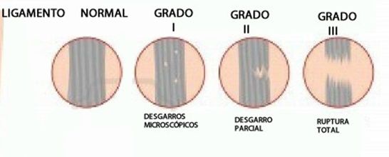Las lesiones de los ligamentos pueden ser de 3 tipos: